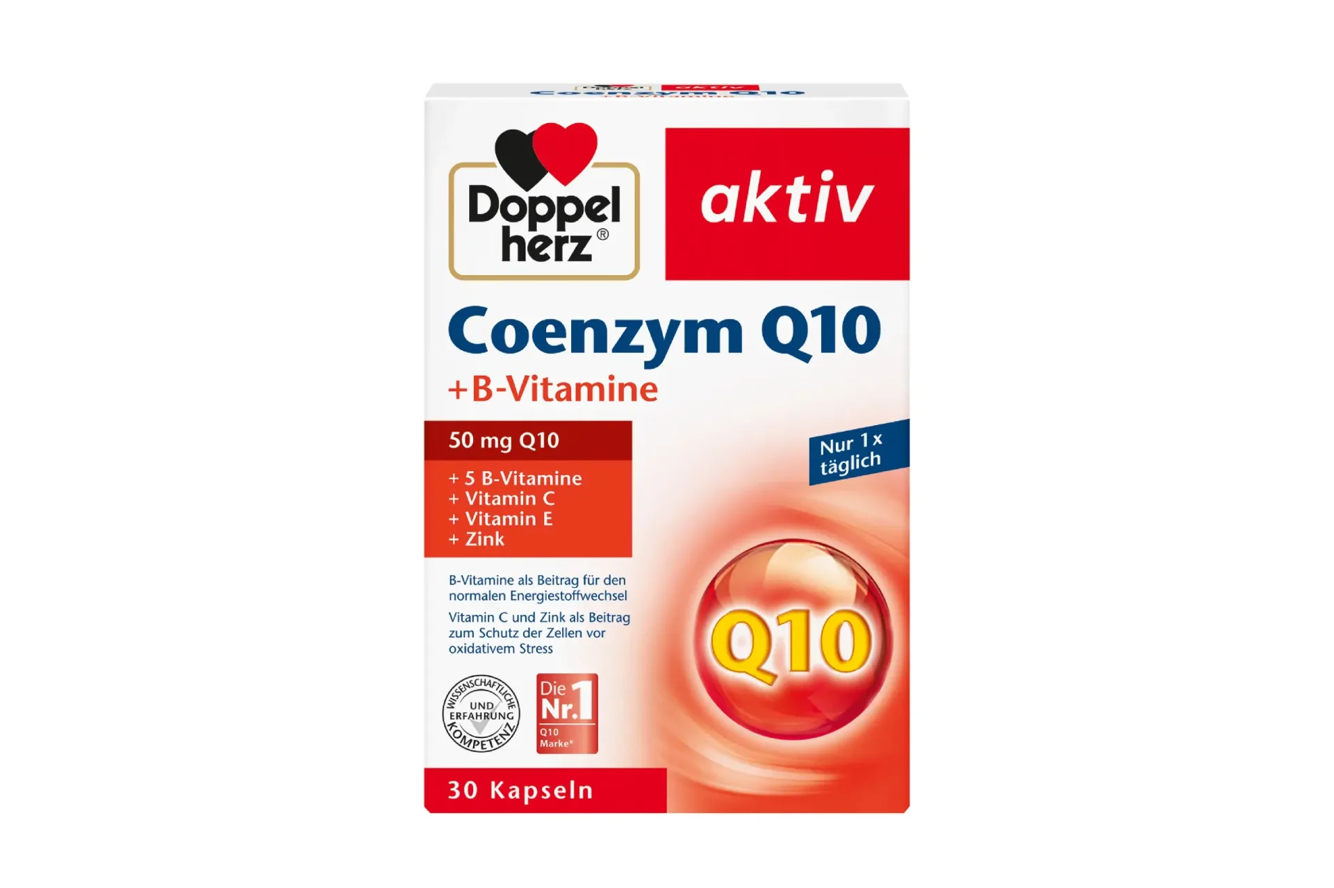 Doppelherz® aktiv Koenzim Q10 + B vitamini u jednoj kapsuli sadrži 50 mg koenzima Q10, 5 odabranih B vitamina (B1, B2, B6, B7, B12), vitamin C, E i cink. Vitamini B1, B2, B6, B7 i B12 podržavaju normalan metabolizam stvaranja energije, vitamini C, E i cink doprinose zaštiti stanica od oksidativnog stresa. Proizvod ne sadrži gluten i laktozu.